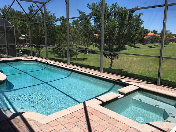 IMPRESSIVE FURNISHED VACATION POOL HOME IN DESIRABLE HIGH GROVE RESORT. CONVENIENTLY LOCATED NEAR SHOPPING, THEME PARKS AND LOTS OF DINING. HOME HAS A BEAUTIFUL POOL WITH A SPA. The home is a luxurious Mediterranean styled villa with 3 bedrooms and 3 bathrooms (easily made to 4 bedroom), it was newly built in 2005. The villa is set in the gated community of High Grove and is just minutes away from Disney and all it has to offer. The Floridian features 2 pool walk out master suites with an additional bedroom as well as your own private pool and spa which can be heated if so desired. ALL POOL EQUIPMENT was replaced a year ago with all highly efficient new equipment. The pool has a lovely view of a community garden area. Community has a fitness center, arcade, and more in the clubhouse as well as a mini golf course and children's play area.