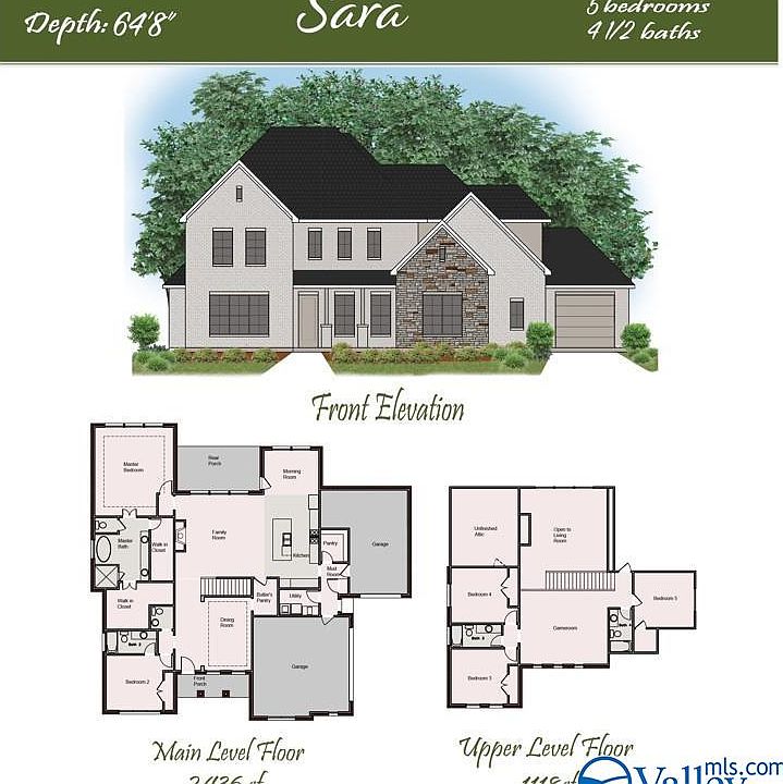 Customer Presale. New Sara Plan with 5 bedrooms and a game room. 2 story great room and filled with included features! 10' ceilings and 8' doors on main level. Formal Dining Room with elegant trim details throughout home. Quartz counters, double oven, gas cooktop, vented cabinet hood, large walk in pantry. Main level Master Suite has trey ceiling and hardwood flooring, freestanding soaking tub and large shower. 2 huge master walk in closets. Downstairs bedroom with private bath. Covered front and back porch with 3 car garage, Duel Fuel Gas HVAC, Tankless Water Heater, Full Sprinkler System and much more! Madison City Schools and convenient location! Model open by appointment.
