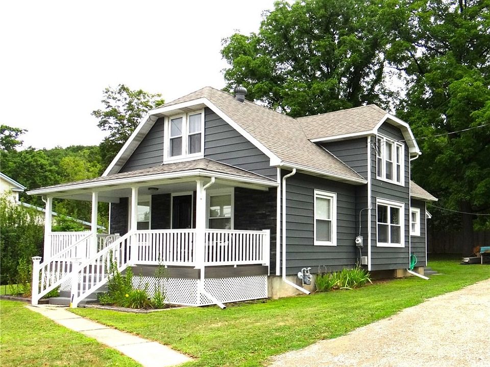 This 3 bedroom, 2-bath cape cod shines with amazing first-impression curb appeal. Step inside to find a generous living room open to formal dining room and spotless charming kitchen that connects to a large, enclosed back porch for convenient storage and/or boot room. Main floor bedroom and full bath offer flexibility, in addition to the upper bath and 2 more spacious bedrooms. Recent updates include a new roof, furnace, electric service, hot water tank, and newer skylight. Home also features crushed concrete driveway, central air for those hot summer days and vinyl windows to let the fresh air in when not so hot. The covered front porch has been beautifully refreshed with composite decking, creating the perfect spot to relax. Set on a wonderful yard alive with wildlife, this home blends a country feel with a close-to-town convenience – the best of both worlds. Look, LOVE, Live!