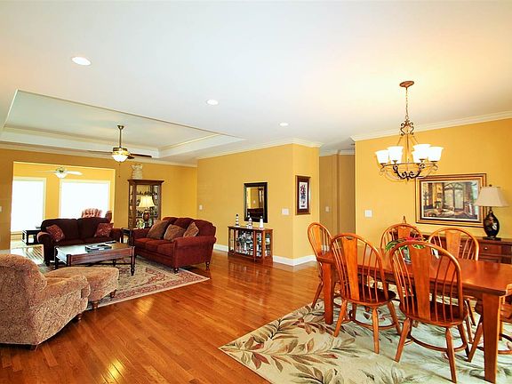 This open floor plan was designed and built with hosting family events in mind. The front porch and perfectly groomed landscaping welcome everyone home to the smell of what's cooking in the eat-in kitchen. Enter into an over sized Living/Dining Room combination that opens to a sunroom, creating a gathering space for family and friends all at once. The Gourmet Kitchen has plenty of counter space to prepare and serve meals to the largest of crowds. The Dual Owner's Suites feature beautiful bedrooms with walk-in closets. The spa-like bath has private vanity and bathroom areas with a separate space for the deep soaking tub and spacious. This home is so thoughtfully designed, you will immediately see why this place is called home.