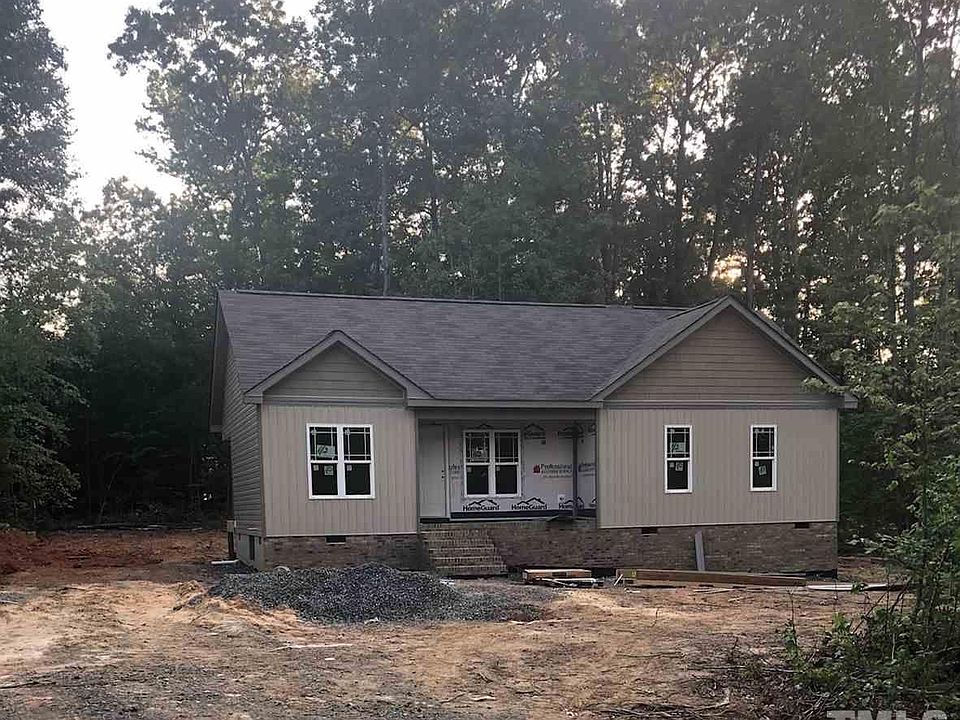 Ranch 3 bedroom/2 bath home being built on wooded lot. Rocking chair covered front porch. Family room features vaulted ceiling & ceiling fan light combo. Kitchen: Granite countertops, custom cabinetry with crown molding, pantry and can lighting. Master bedroom with 2 walk in closets! Double marble vanities & tub/shower combo. Wood shelving throughout. Framed mirrors in baths. Covered back porch.