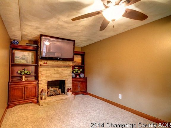 Spacious updated ranch home in Ivesdale on 6 acres. Beautiful setting with lush landscaping, large trees and a creek in the back are just a few of the features this home has to offer.A brick side walk leads you into this great home.3 bedrooms and 2 updated bathrooms offer privacy at one end of the home.Formal living room and family room both offers great private views.The family room features a gas log fireplace with classic stone hearth and surround.The large eat in kitchen has plenty of counter and cabinet space.Featuring maple cabinets and black built in appliances and adjoining dining area.Front office area features the home's 2nd fireplace and separate entrance.This beautiful acreage also has a 56x100 machine shed part of which is finished with half bath, bar and added insulation.