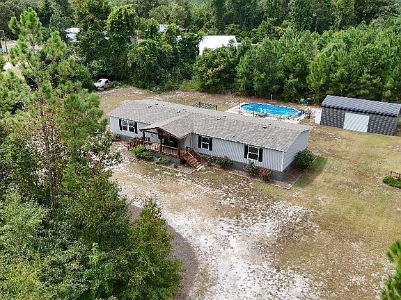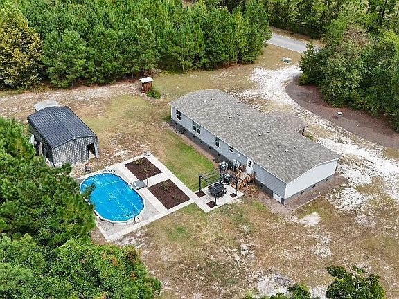 On a secluded acre lot, this 4 bed / 2 bath home with a pool and workshop is your new paradise! Experience the perfect blend of space and serenity in this charming 4-bedroom, 2-bath manufactured home, nestled on a peaceful and private acre lot in Horry County, less than an hour from Myrtle Beach with quick access to the highway. Boasting 2,016 square feet of living space, this home features a thoughtfully designed split floorplan that combines both inviting comfort and functionality. The heart of the home is the recently renovated kitchen, which features updated refaced cabinets and a large concrete island countertop. This modern upgrade provides ample workspace and a stylish focal point for meal preparation and casual dining. The kitchen seamlessly connects to the living and dining areas, making it ideal for both everyday living and entertaining. The interior of the home is enhanced by newly refinished red oak hardwood floors that offer a warm and inviting atmosphere. The split floorplan separates the primary bedroom from the additional three bedrooms, providing a retreat-like experience. The primary suite includes an en-suite bath, while the additional bedrooms are conveniently located near the second full bath. Step outside to enjoy the expansive front patio, which is covered to offer a comfortable space for outdoor relaxation, whether it’s sipping your morning coffee or unwinding in the evening. The backyard is a true highlight, featuring a semi-in-ground, hard-sided pool that offers a refreshing escape during the warmer months. The pool area is perfect for hosting gatherings or simply enjoying a quiet dip. For those who need additional workspace or storage, the property includes a sizable 18x30 workshop equipped with electricity. This versatile space can accommodate a range of projects or hobbies, making it a valuable addition for enthusiasts and DIYers alike. The property is serviced by well and septic systems, providing a self-sufficient lifestyle. Surrounded by mature trees, the lot not only offers beautiful natural surroundings but also ensures a high degree of privacy. This home combines the convenience of modern living with the peace and seclusion of a rural setting, making it a perfect choice for those seeking both comfort and tranquility. Experience the best of both worlds at 204 Tobacco Leaf Rd, where every detail has been thoughtfully designed to create a serene and functional living environment! Please note that the Grantor of the deed holds a 15-day Right of First Refusal for this property. Upon receipt of an offer, the seller is required to provide the Grantor with written notice, after which the Grantor has 15 calendar days to match or exceed the terms of the offer. During this period, no further actions or commitments can be made regarding the offer until the Right of First Refusal period expires or the Grantor declines. All potential buyers should be aware of this requirement and time frame.