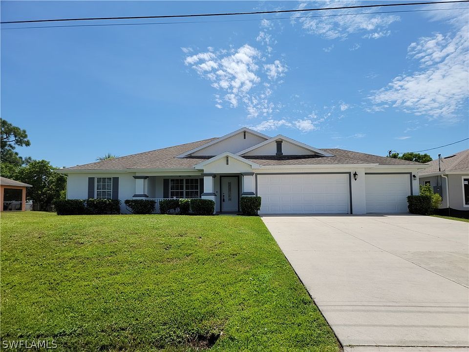 Lots of space in this 3 Bedroom + Den 2 Bath Home in Cape Coral! This home is almost 2000 sqft but feels much bigger. Den can easily be used as a 4th Bedroom, home also contains a separate office area. Kitchen has lots of Corian counter space pantry and also a dining room area, Master bedroom features huge master closet! Master bath has dual sinks and separate garden tub/shower. Home features New Interior/Exterior Paint and a spacious 3 car garage. Exterior features include nice sized lanai and front porch. Great centralized location with quick bridge access and plenty of shopping nearby.