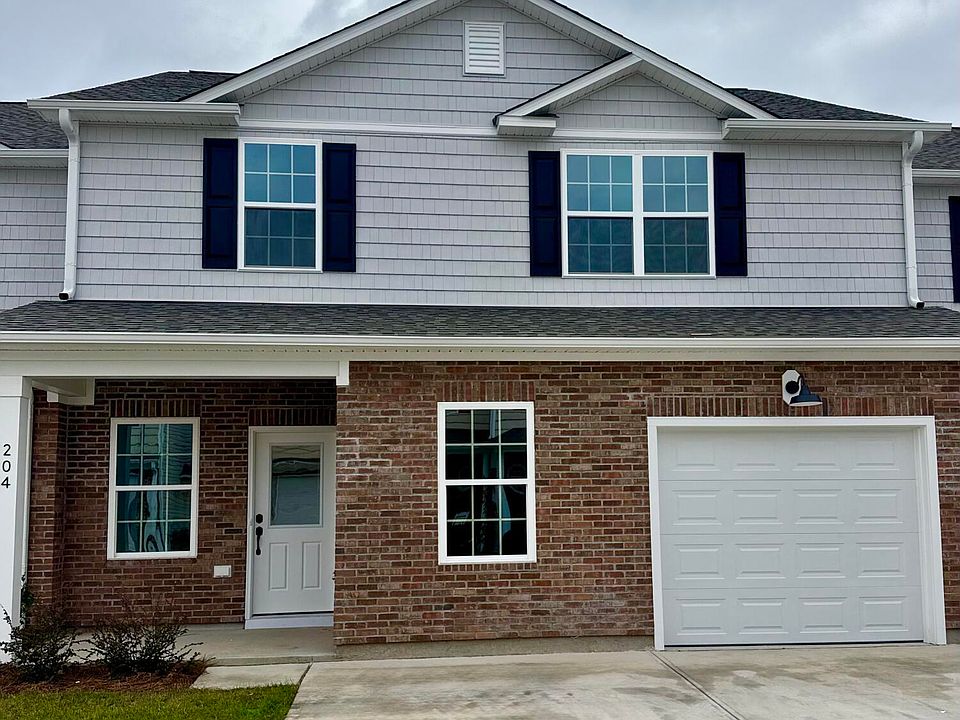 The Roanoke ''B'' is a new construction, interior-unit townhome with an estimated completion date of August 2025. 3 bedroom, 2.5 bath plan with an additional office/gym room. Two-car parking pad, front porch and 8'x10' back patio. Open kitchen with island, tile backsplash and full wood cabinets. Quartz countertops throughout home. Tile bathrooms and laundry room; LVP in main living areas; carpeted bedrooms and hallway on second floor. Oversized single car garage with storage area.