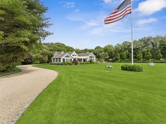 Experience the pinnacle of luxury living in this stunning estate set on just under 3 acres. Reminiscent of the best of Nantucket, Palm Beach, and the Hamptons, this property is an entertainer's dream. Accessed via a gated entrance and a long driveway, the beautifully landscaped grounds create an immediate impression of grandeur. The approximately 6000 square foot home welcomes you with a grand foyer, offering views of the magnificent grounds. Ideal for entertaining, the home features a monumental great room with cathedral ceilings, floor-to-ceiling windows, and fireplace, a cozy den with fireplace and full bar (including sink, refrigeration, and ice machine), and a formal dining room with its own fireplace. Outdoor entertainment is just as impressive, with covered decking that comfortably seats 30 guests for dining, and the rolling lawn with custom lighting - perfect for any event. The custom kitchen is a chef's delight, boasting granite countertops and high-end appliances. For relaxation, retreat to the expansive first-floor primary suite, complete with dual bathrooms and a sitting room. Guests will enjoy privacy in one of the five spacious guest bedrooms, and staff accommodations are thoughtfully designed with a seventh bedroom. The outdoor amenities continue with an apple orchard, a heated 20x50 pool with a cabana, a pool house featuring an outdoor bar, sink, and refrigeration, and an outbuilding currently housing a gym. The property also has room for further expansion, including the potential for a tennis court. This estate truly offers the best of luxury living and high style in the Hamptons. Don't miss your chance to experience this magical property.