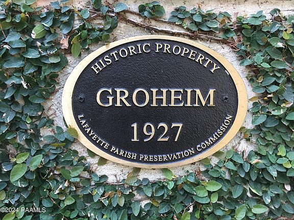 A rare opportunity to purchase a stunning historical Tudor Revival Manor, Groheim, built in 1927, set amongst tranquil French Parterre gardens and 9 registered Live Oak trees in the heart of Lafayette, LA. The grounds, enclosed with wrought-iron fencing and protected by an electronic gated entrance, elicit a European atmosphere graced with azaleas, camellias, boxwood, and roses. Fountains and antique artifacts accentuate the estate of a French Normandy castle. The owner, an internationally known painter, William Carl Groh III expressed his talents canvassing the decor of this Historical Home. From the marble mantels, leaded glass windows, Tudor arches, embellished doorways and intricate woodwork, this breathtaking showcase creates a lovely residence or would make an outstanding business opportunity. The detached studio is presently being utilized by Maestro Groh when painting his masterpieces. This dream of a lifetime will be available beginning Wednesday, July 17 with an AGENT/CLIENT OPEN HOUSE 11am-1pm.