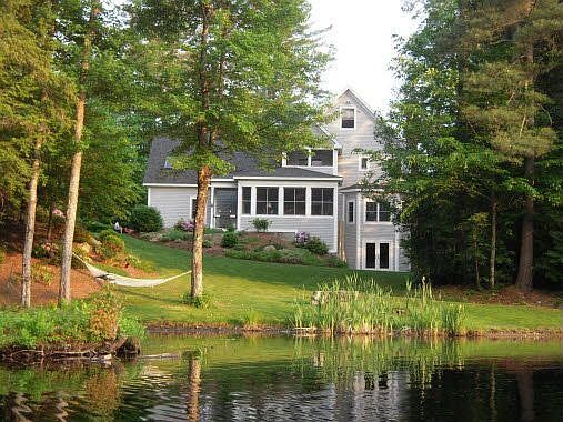 Beautiful Victorian waterfront home and property located on Tannery Pond. Exceptionally well built with many custom details you will enjoy. 4 bedrooms, 4 1/2 baths, including a master bedroom suite with beautiful bath, porch, coffee bar and office. Gourmet kitchen with fireplaced living room, dining room, parlor, enclosed porch overlooking the water, family room, workshop, walk-up attic and 2-bay garage. Central AC. Privately sited on over 3 acres of land with 537 feet of water frontage, including front lawn to waters edge, sandy swimming, brook, campfire ring, cottage outbuilding with septic design and spaces in which to garden.