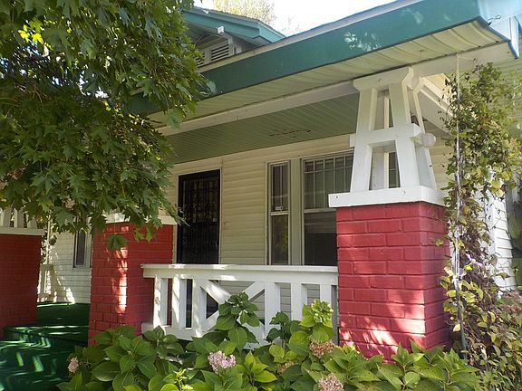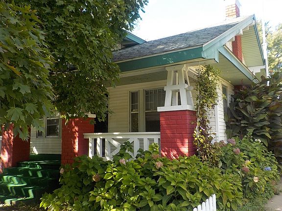 Your Own Home, Finally, a home where you can be what you want & do what you want. From the darling covered front porch & steps that have been carpeted in green carpet to the white picket fenced front yard, 2 large trees that gives all kinds of privacy from the street, vinyl siding. The oversized 2 car detached garage + 2 storage sheds & chain link fenced backyard (the yard goes beyond the back of the fence to the alley). The elephant ear plants & cactus plants in the backyard do not stay). The home has the original wide woodwork, doors & pocket door to the front bedroom. The back bedroom has 1 smaller & 1 walk-in closet that has built in shelves, cabinets & lg drawers for storage. Bathroom has some remodeling (flooring, toilet w/push button flush, new sink cabinet, light fixture & faucets, medicine cabinet + older linen closets on each side of the bathroom. The kitchen & laundry room has newer flooring. The large laundry room has built in cabinets. The living room has a fake fireplace.