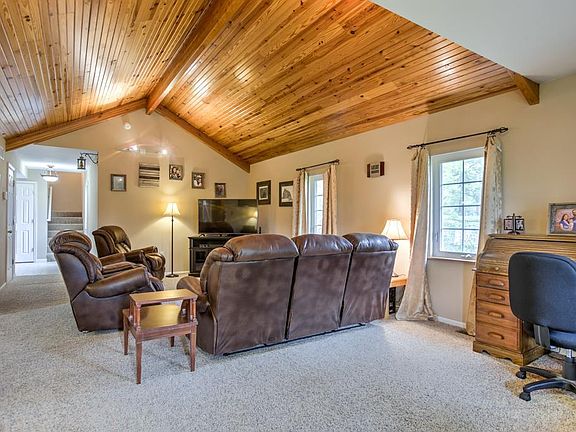 UNIQUE EARTH CONTACT HOME in SMALL TOWN! This home has been WELL MAINTAINED! UPDATED INTERIOR & NEWER KITCHEN! LARGE GREAT ROOM with VAULTED WOOD-PANELED CEILING! It has a "lodgey" feel to it! Main level master suite! Good room sizes throughout. COMPLETELY FINISHED LOWER LEVEL with BAR- PERFECT for ENTERTAINING GUESTS or "MAN CAVE"! OVERSIZED DRIVEWAY & GARAGE! Sit outside & enjoy the COVERED PORCH! 25 MINUTES TO KC & SHOPPING TO BOTH THE EAST & WEST! This home is A MUST SEE!