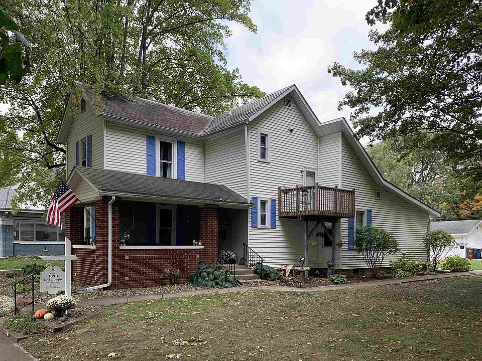 5-6 BR, 3 bath, 2 story w/beautiful orig ww and wood floors; kitchen open into FR with fireplace; Master suite and 2 BR on main floor; 2-3 BR up w/full bath; rec room in basement; replacement windows; great front porch and back deck; 2 car detached garage; storage shed;