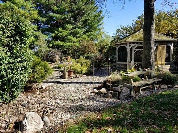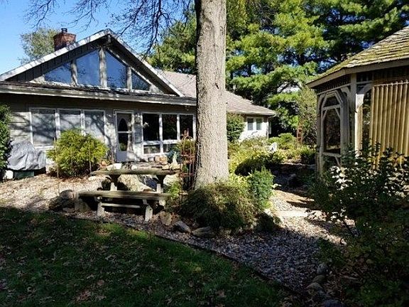One of a kind unique 3 BR, 2 BA home located in small village setting. This energy efficient home features double wall construction, whole house generator, water filtration system, and recently replaced water heater. Dining and living room area feature cathedral ceiling, a brick fireplace, and also a loft. Home also has a 2 car attached garage, as well as a very large detached garage with work shop and storage area. The owners have instilled 20 years of love and hard work into the perennial gardens complete with gazebo located on the property grounds which includes a journal with plant names and plant care instructions. You can also do year round container gardening inside the solarium located on back portion of home.