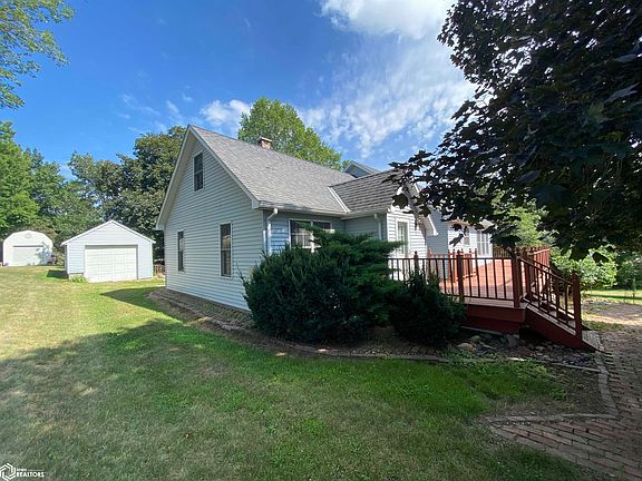 Located in the sweet town of Kimballton, this 1½-story home combines the charm of an older home with the space and amenities a large addition provided in 1993. The main level addition includes a spacious kitchen and dining area, as well as a master suite with walk-in closet and bathroom. Master bath includes tub, walk-in shower, washer and dryer hookups, and amazing storage. Oversized two-car garage is located under addition. This home has steel siding, Pella windows and an Andersen French door opening to complete wrap-around deck. Beautiful lot includes private backyard oasis and great views from deck.
