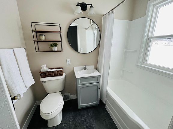 Country feeling with city amenities. Huge yard with 3 city lots. Home has new roof, updated vinyl windows, updated vinyl siding, new kitchen cabinets & countertop, new vinyl plank flooring in the kitchen & bathroom, new 4 piece stainless steel appliance package, new light fixtures, new carpet upstairs, and a main floor bedroom. Hardwood in good condition throughout the living room and bedroom.