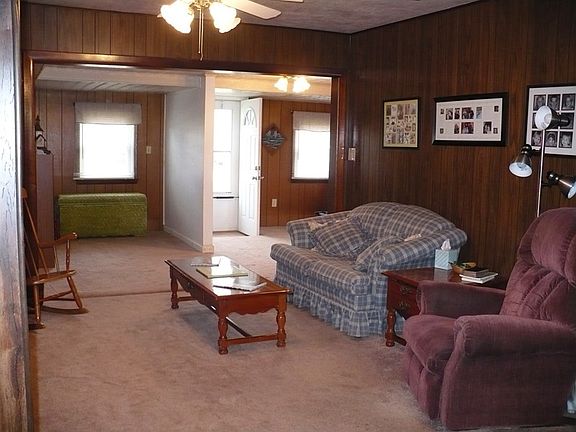 Small town living! 2 BR/1 Bath with a big utility room, covered porch, 2 car detached garage with a fantastic workshop! In 2007, everything was done for you: roof, windows, doors, 90+ furnace, a/c, ductwork, water heater, insulation, breaker box and electric service. Kitchen has ceramic backsplash and lots of cabinets. Home has wide hallway, big closets and ample storage. Don't miss this one!