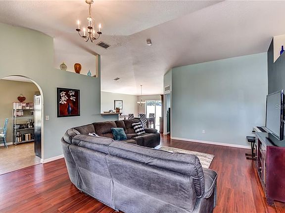 HERE IS THE GORGEOUS HOME YOU'VE BEEN WAITING FOR!!! (SEE PHOTOS!) This solid concrete block, 3-bedroom, 2-bath home is light, bright, spacious, and beautifully maintained! It features vaulted ceilings, gorgeous flooring throughout, and a perfect open floor plan for family living or entertaining. Notice the arches and elegant architecture! The kitchen has tons of cabinet and counter space, an eat-in dining area, ceramic tile, and all appliances are included. Another bonus is the interior laundry area with washer and dryer included! The master suite includes an en-suite bath with a soothing soaking tub (garden tub) to relax in after a long day, plus a separate shower. The backyard is fully fenced with vinyl fencing and is ready for children, dogs, or just to have as your own private retreat. The entire outside of this home and parts of the inside have recently been freshly painted. Pavered driveway! All this in the popular Mallory Square subdivision not far from historic downtown DeLand, with its many fine restaurants, art galleries, art museum, Stetson University and the weekly Farmer's Market with fresh local produce. Easy access to I-4 and convenient to Orlando and the beaches. This beautiful home is move-in ready and waiting for you, so don't delay! Make an appointment to see it today!
