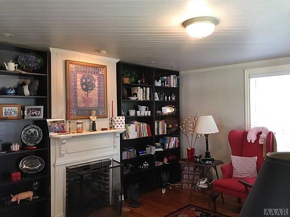 This ADORABLE home in Edenton's Historic District is a perfect option for those buyers wanting the "not so big" house. The welcoming front porch is a Southern tradition for outdoor living. Spacious living room w built ins, fireplace & beautiful wood ceiling. The kitchen is filled w natural light & offers adjoining dining room & separate breakfast nook. A half bath is neatly tucked under the staircase as well as additional storage. Upstairs you will find two bedrooms & a full bath. The back yard is fenced & easily connects from the side entrance or driveway. Neatly landscaped too!