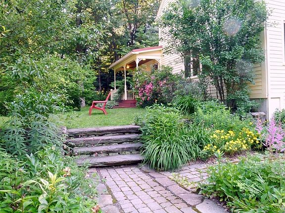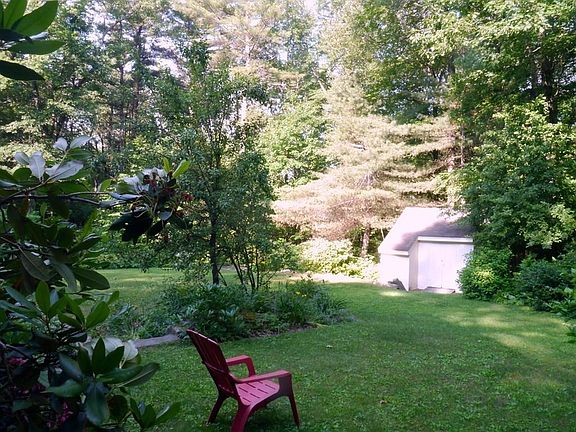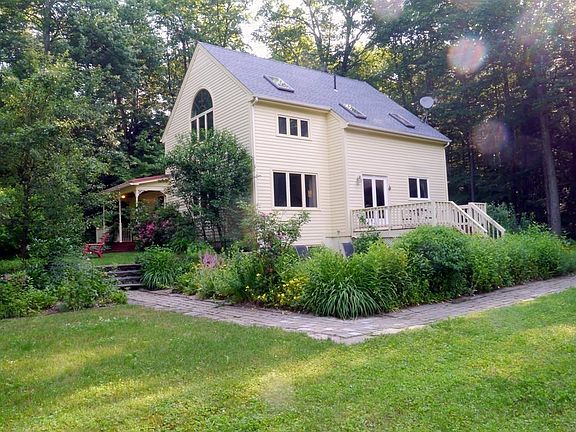 Wonderful opportunity to own this beautiful Contemporary home built by Kohl Construction . New GAF LIFETIME asphalt shingle roof and freshly painted outside! Southern exposure floods the cherry floors throughout the first floor with custom built-ins and an open floor plan. Four bedrooms upstairs with vaulted ceiling and skylights and two rooms on first floor which could be used as a bedroom. The spacious kitchen looks out onto a sunny large deck and also a 120 SF screened in patio porch offering a lovely private wooded scenery complete with gentle flow stream and perennial gardens. You will feel close to nature. DSL internet.There are three full baths throughout and a spacious Master bedroom complete with jetted tub and shower. There is an additional 288 SF of finished basement space. Generous shed/ chicken coop for those interested in light homesteading. A peaceful 12 minute drive to Amherst center, major routes, and shopping- a wonderful place to call home!