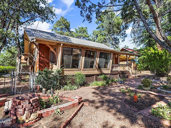 Come & explore this charming 2-bed, 2-bath home w an Arizona Sunroom & an extra-large great room. It is nestled within a picturesque pine tree-filled landscape with meandering walkways around the private gardens, beckoning to be brought back to life. This turnkey furnished home boasts unique custom features throughout including granite counter tops, large laundry, upgraded guest bathroom, & its front deck is the perfect spot to savor your morning coffee & watch the abundant wildlife. Whether you're seeking a permanent residence, a weekend getaway, or just an opportunity to turn your dreams into reality, this home offers it all. Plus, it's conveniently located just a short walk to restaurants, shopping, & all the amenities Payson has to offer.