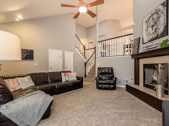 Stunning Home w/ great view. Freshly painted exterior & new privacy fence. Wide open floor plan & vaulted ceilings makes this house stand out from the rest. Cozy living rm with fireplace makes you feel right at home. Spacious kitchen has updated cabinets, double pantries & an eat-in bar. Retreat to your private master suite w/ whirlpool tub & his and her walk-in closets. All bedrooms have walk-ins. House offers tons of options with its finished basement & walk out patio ready for you to make it your own.