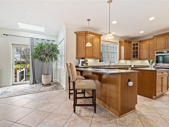 GORGEOUS immaculately maintained 2sty w/a massive 3 car garage&ultimate convenient location to almost everything! STUNNING hardwood floors,GREAT SIZE rooms,FABULOUS woodwork,trim,moldings,plaster work,lots of skylights&details throughout this custom built beauty. FANTASTIC main floor den w/rich custom woodwork&built-ins. Impressive chefs kitchen w/double oven,cook top,breakfast bar,island,lg pantry,perfectly positioned eat in area & slider to trex deck. Open sunken family rm boasts 10ft ceilings,columns,beautiful fireplace&tons of natural light. Oversized formal dining rm w/triple tray ceiling&gorgeous moldings. HUGE master suite w/cathedral ceilings, AMAZING updated ensuite w/rain shower,built in seat,split dbl bowl sinks & LVP flooring,3 additional great sized bdrms, main bath w/dbl bowl sinks&hugely DESIRABLE 2nd flr laundry w/folding table&built in ironing board(washer&dryer included). Lg easy to finish lower level w/poured concrete foundation. Enjoy the community pool & clubhouse