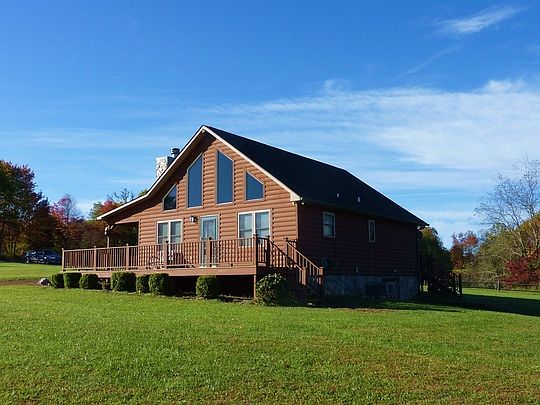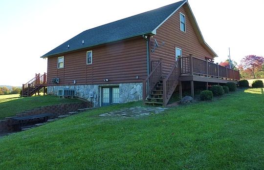 Log sided cabin on 5+ acres in Carroll County, VA. This 2 bedroom, 2 bath home is in perfect, move-in condition. The home was built in 1999 but has been lovingly maintained and shows as new. The main floor contains an open kitchen, dining and living area with vaulted ceiling and an exposed beam. There are multiple, large windows yielding incredible light into this portion of the home. Both bedrooms, a full bath and the laundry area are all also on the main level. The loft contains an additional seating/sleeping area with a second, full bath. The basement has inside and outside access, has been plumbed for a third bath and is partitioned into three separate areas. The home has a covered, front porch with open decks wrapping around both sides of the cabin. The stone fireplace has vented, gas logs and the home has been wired for a back-up generator. The 5+ acres is private, part open, part wooded and has a small branch running the back property line.