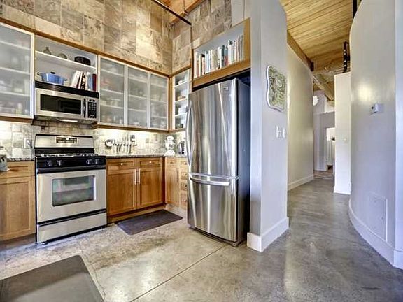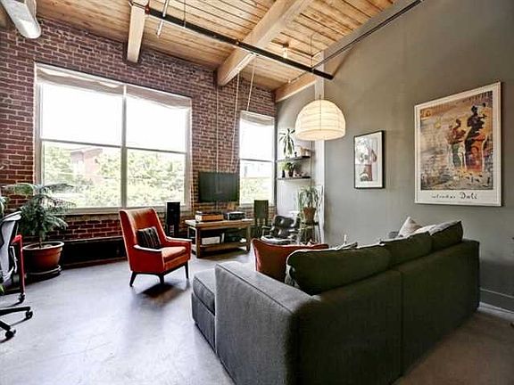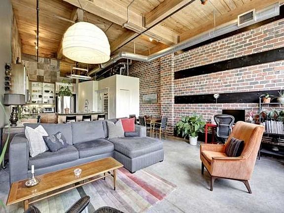 True historic loft living in Castleberry Hill. 14' ceilings, Sunset views through the oversized livingroom windows, exposed brick & ductwork, polished cement floos, and gorgeous wood beams & ceiling. Upgrades include granite counters and breakfas bar, stainless steel appliances, slate backsplash, and open floor plan. Recently remodeled spa-like bathroom boasts a jetted tub, designer tile, double shower heads and double vanity. Don't miss the roof-top deck with spectacular views of downtown and secure parking which allows room for additional storage. Won't last long!