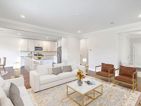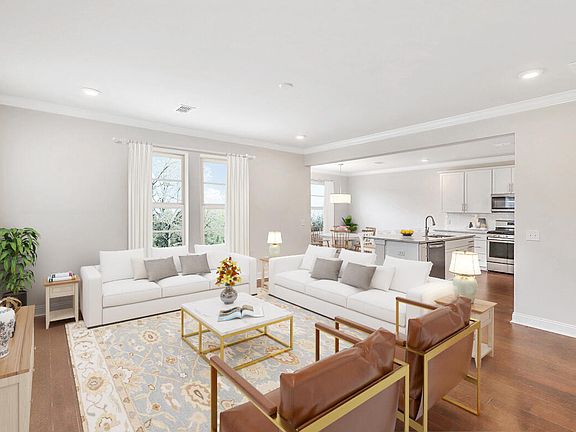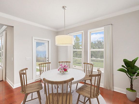 The Maple Plan features 3 bedrooms, 2.5 bathrooms with generous second floor loft space! Upgraded laminate flooring on the main and oak tread steps. Kitchen has upgraded KitchenAid appliances, 42'' cabinets, tile backsplash, single bowl sink, upgraded faucet, quartz countertops, large island, walk-in pantry and pre-wired pendant lights. Primary bathroom with tile surround, semi-frameless shower in black matte with separate soaking tub, quartz vanity top and tile flooring. Secondary bathroom has upgraded tile flooring and quartz vanity top. Cottage box balusters & railing. Separate laundry area conveniently off the loft. Whole house black matte finishes. Enjoy views of the pond wetlands while relaxing on the screened porch, lawn irrigation. Slate gray exterior siding with stone accent.Jasmine Point Amenities include a beautiful pool, cabana, and wooded play park area with sidewalks throughout the neighborhood. 350 acre lake access for boating, kayaking and fishing. HERS score 41. Energy Series Ready Home ZER0 ENERGY READY.