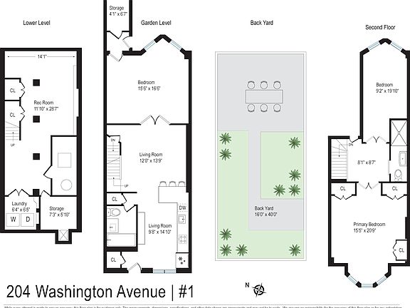 COMPLETE PHOTOS COMING SOON - EMAIL FOR VIDEO WALKTHROUGHS Spacious Clinton Hill Triplex with Private Garden and Flexible Layout Welcome to 204 Washington Avenue - a thoughtfully updated and generously proportioned triplex townhouse for rent in the heart of Clinton Hill, just off Myrtle Avenue. With a private rear garden, flexible layout, and classic Brooklyn charm, this rental offers a rare opportunity to enjoy space and comfort in one of the borough's most dynamic neighborhoods. Spanning three levels, this home features private entrances on both the ground and second floors, providing privacy and versatility across multiple levels and spaces. The ground floor boasts a large open living and dining area, a renovated kitchen with stainless steel appliances, a full bathroom, and access to the beautifully landscaped backyard - your own private outdoor retreat. Upstairs, the second floor offers over 11-foot ceilings and two spacious bedrooms. The oversized primary suite includes abundant closet space and ample room for a king-sized bed and additional furnishings. A second bedroom sits across the hall and is adjacent to a well-appointed full bath with modern fixtures and finishes. The lower level is a finished basement that adds substantial bonus space, for use as a media room, recreation area, guest suite, or workspace. It also includes a private laundry room with washer and dryer, plus generous storage throughout. Located on a tree-lined stretch of Washington Avenue, this home is ideally situated to Fort Greene Park, Pratt Institute, and the cultural and culinary richness of Clinton Hill and Fort Greene. Transportation is seamless with easy access to the Clinton-Washington G train, the C train at Lafayette Avenue, and numerous bus lines including the B38, B52, and B54. A variety of highly rated public and private primary education options are also in the area. This is a rare opportunity to enjoy the space and feel of townhouse living in a sought-after Brooklyn location - with room to grow, work, and relax, both indoors and out. Available for immediate occupancy. Pets considered on a case-by-case basis. Shown by private appointment only.