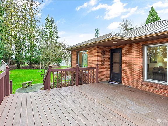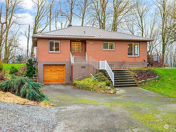 Beautiful mid-century brick home nestled among trees & wildlife at private quiet dead-end street, yet just minutes from Sumas amenities. Enjoy peaceful gorgeous views of surrounding trees, seasonal partial Mt. Baker views, listening to the birds & watching deer visit. 1 story brick home w/fully finished basement has been remodeled t/out. Newer lifetime metal roof, updated bathrooms & kitchen, newer flooring including carpet, vinyl windows, cell shades & more. Great floor plan w/everything you need on the main, but family room, utility, & spare bath in basement. All on over 1.3 acres w/detached 2 car shop for your hobbies.