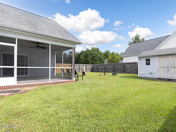 Enjoy the outdoors year-round on the screened porch accessible from both the living room and the master bedroom. The fenced-in backyard features a wired shed equipped with a portable AC unit, offering additional storage or a comfortable workspace.