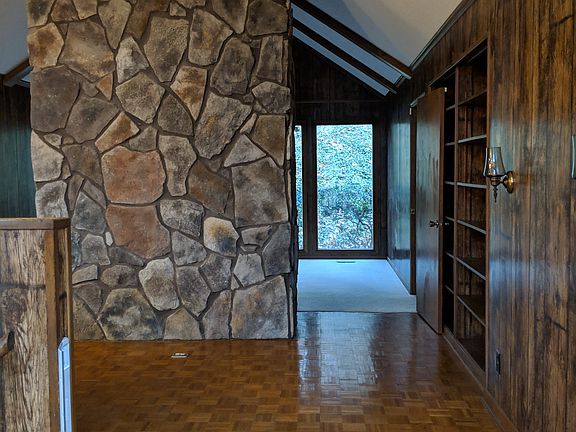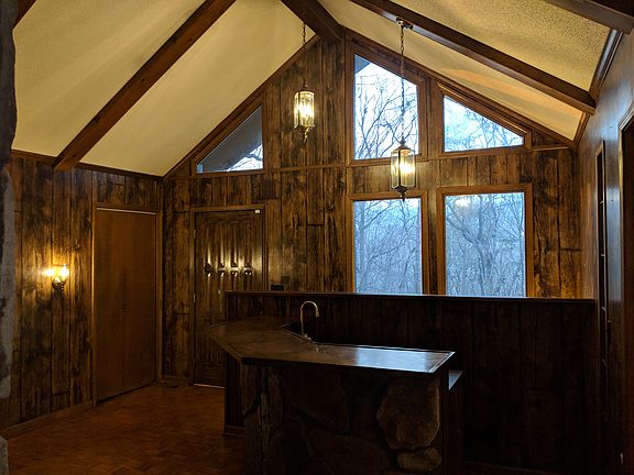Private wooded lot with a view. Sprawling main level includes 3 bedrooms, wet bar, vaulted ceiling, both wood and gas fireplaces set in gorgeous mountain stone. Includes mother-in-law suite with separate kitchen. Expansive completely private screened in porch on main level. Basement level is finished with 2 bedrooms, massive attached 2 car garage and workshop. Large built in pantry, built in book cases, and loads of closets and storage throughout.