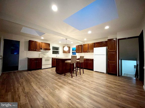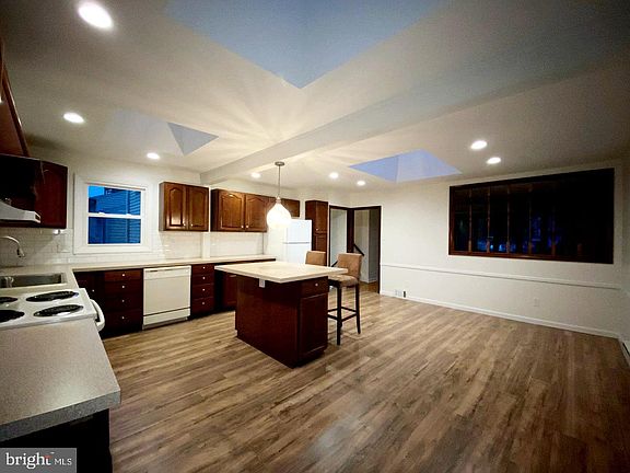 - Ceiling Fan(s), Kitchen Island, Recessed Lighting, Dining Area, Eat-in Kitchen, Skylight(s), Wood Floors, Kitchen - Table Space, Combination Kitchen/Dining