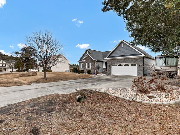 Welcome to highly sought after Kings Harbor. This custom built home in 2013 has all of the bells and whistles. When entering the home thru the arched entry way you will notice the expansive open floor plan. with water views from the living room and sunroom. The living room offers a gas log fire place with a nice stone accent wall. Just off of the living area is an office with a built in L shaped desk and window overlooking the front porch. The expansive kitchen offers granite countertops with stainless steel appliances and a large island in the center of the kitchen area. Off of the kitchen you will find the laundry room with wash sink and plenty of room to complete your laundry needs. The two large bedrooms are located on the opposite side of the home. The over sized second bedroom is set up with 2 areas and two large closets at each end of the room with two windows facing the front of the home. When entering the Master bedroom the first thing you will notice are the expansive water view. The master bathroom offer two vanities which are separated by the jetted tub. The master bath also has a walk in shower and a very large custom closet with plenty of storage. All windows and sliders in the home are complemented with plantation shutters. Off of the sun room you will find a large deck for relaxing with your favorite beverage while enjoying the water views. Just down below the back deck you have a stoned patio area and fire pit for additional enjoyment. The back yard has a white vinyl fence to keep the little ones and pets confined.