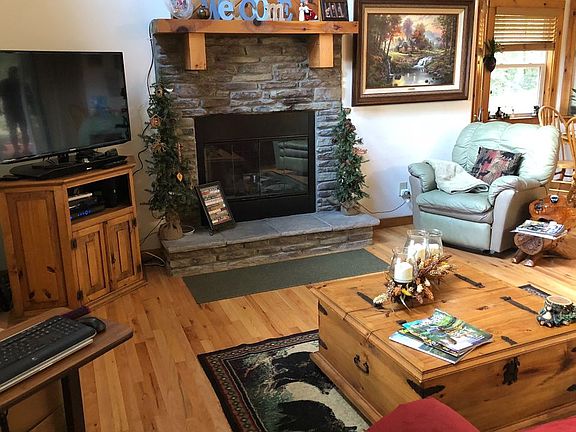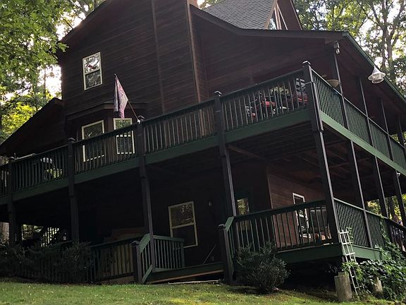 AWESOME YEAR-ROUND MOUNTAIN VIEWS. MIXTURE OF SHEETROCK & WOOD INTERIOR. 3 BDRMS 3 BATHS. STACKED STONE VENTED FIREPLACE WITH GAS LOGS OR WOODBURNING. TERRACE LEVEL HAS DEN WITH WET BAR FOR MINI KITCHEN, BEDROOM & BATH.HOT TUB ON LOWER PORCH. NEW WORKSHOP/STORAGE/CRAFT/SHED WITH ELECTRICITY. 2 CAR DETACHED GARAGE WITH CONCRETE FLOOR & SHELVES. PAVED ROADS TO GET TO THIS MOUNTAIN TOP RETREAT. CABIN OVERLOOKS THE WOODRUFF PROTECTED BOY SCOUT LAND.