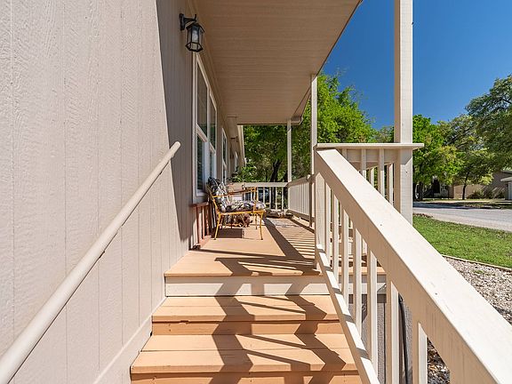 Located in the serene 55+ community of Windmill Oaks in Fredericksburg, TX, this charming 3-bedroom, 2.5-bathroom home offers 1,560 sq ft of comfortable living space. The open-concept kitchen features modern appliances and a breakfast bar, while the spacious living and dining areas are enhanced by 9' ceilings and natural light. The primary suite boasts two walk-in closets and an en-suite bathroom with dual vanities and a walk-in shower. Additional highlights include a 24' x 29' garage with a built-in workbench and half bath, a covered front and back deck, and a fenced backyard with xeriscaping. This home also offers easy access to grocery stores, restaurants, and medical facilities, and is situated just minutes from the heart of Fredericksburg. The land lease is $350 monthly with no HOA fees.
