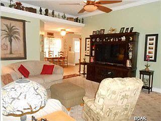 A short golf cart ride and you are at the beach. This three bedroom, 2 bath, with office home is in tip top shape. The split floor plan and the 10' ceiling in the living room make this a desirable floor plan.. Privacy fenced back yard, 2 car garage and e