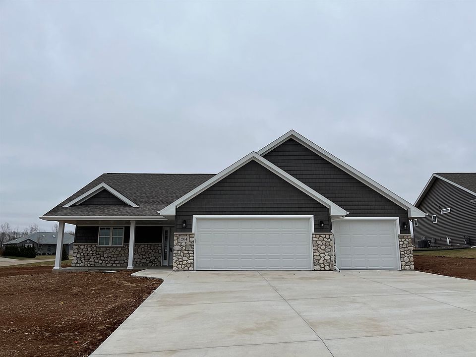 Beautiful 2 bed 2 bath ranch home in desirable East Ridge Subdivision. Open concept floor plan featuring white painted cabinets and trim throughout, vaulted ceilings, master suite with tray ceiling and double sinks, large pantry in kitchen, sunroom, and a fully finished garage. Also includes a concrete patio for outside entertaining. Increase your living space by finishing the basement, exposed windows already installed.