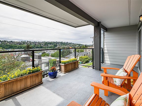 Discover this condo that lives large with its expansive, flowing floor plan. The open kitchen seamlessly connects to the dining and living areas, leading to an unbelievably spacious deck boasting breathtaking views of Elliott Bay, Magnolia, and the bustling cruise ship piers. The bedroom offers ample storage with two closets and a private entrance to the bathroom. Enjoy the convenience of a laundry room with abundant storage space and a brand-new water heater. Additional features include garage parking and a small storage closet on the first floor. The building's exterior has been completely renovated within the past five years, making this an outstanding option in the crowded condo market. Convenient west slope of Queen Anne location.