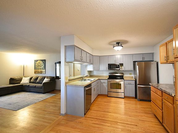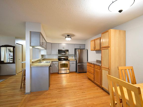 Well maintained ranch style townhome with 3 bedrooms on the main level & fully finished basement! Upon entering you will immediately notice the beautiful hardwood floors. Kitchen presents open design with newer SS appliances. Spacious main floor bedroom features ample closet space and direct access to updated main floor bath. Basement features large living room, wood burning fireplace, 3/4 bath, dry bar, work out area, & office or possible 4th bedroom (with installation of egress window) Exterior boasts mature trees & landscaping with an oversized 1 car attached garage. Affordable HOA includes lawn care, snow removal, exterior maintenance, sewer & water, as well as sanitation. Quiet cul-de-sac location offers quick access to downtown businesses, trails, & parks.