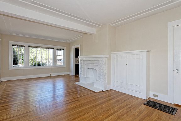 Lovely 2 bedroom / 1 bathroom light filled corner bungalow home. Original details include brick fireplace, built in cabinet, recently refinished wood floors, & moulding throughout. Kitchen is updated with stainless appliances including gas range. Fenced in backyard with off street parking space. Located between Fruitvale & Coliseum BART stations. Close to Mills College & Fruitvale Station shopping area.