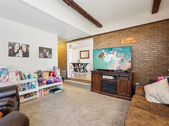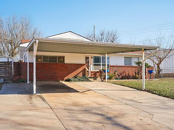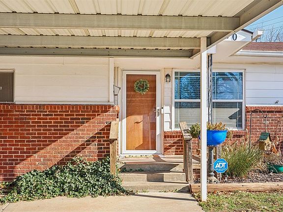 This charming home offers a welcoming curb appeal with a combination of brick and siding. Exciting updates are on the way, including new white siding and a brand-new roof! Situated on a corner lot, the property also features a carport for convenient parking. Step inside to discover an inviting open layout. To your right, a bright seating area is perfectly positioned by the windows, filling the space with natural light. The dining area seamlessly connects to the living space, while the remodeled kitchen sits nearby, boasting granite countertops, freshly painted cabinets, and a gas stove. Wood-look tile flows beautifully through the dining and kitchen areas, adding style and durability. Adjacent to the dining area, you’ll find a versatile room that can serve as a secondary bedroom or office. The cozy living area is accentuated by warm, wood-colored beams, adding character to the space. Down the hallway, the primary bedroom awaits, complete with a recently remodeled and freshly painted en-suite bath. Additional bedrooms are located on the opposite side of the home, along with convenient storage cabinets for towels, blankets, and other essentials. The outdoor space is equally impressive, featuring a patio for relaxation and a storm shelter for added safety. Plus, the home comes equipped with a one-year-old HVAC unit, ensuring comfort and energy savings. Anthony Circle is conveniently located near Rose State College, Tinker Air Force Base, and major highways.
