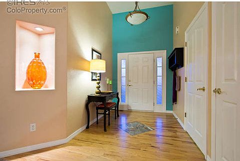 Spacious Ranch Homes. Large, open great room, formal dining room, eat in kitchen. Wood floors. Master bedroom features a sitting area, 5 piece master bath. Finished bonus room above garage could be an office, flex room, craft room, bedroom, etc...Full unfinished basement provides room to grow. Huge 3 car garage and concrete parking pad on side. Large lot with beautiful yard, deck, garden area & mature trees. Neighborhood offers direct access to Loveland's walking trail and the Big Thompson.