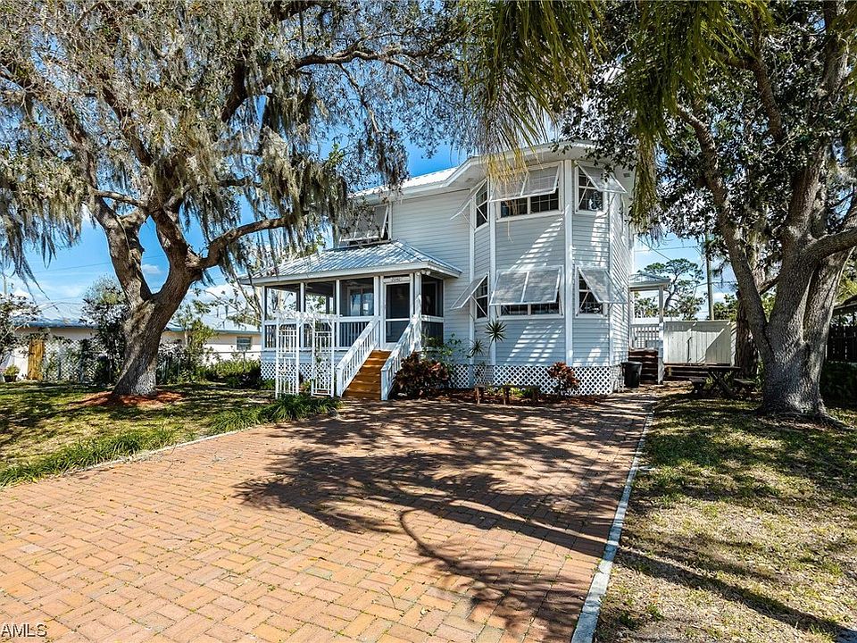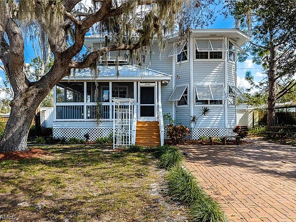 Old Style Florida home located in Beautiful Old Olga! This 3/2.5 home is just over 1600 sq. ft. It features a screened wrap around porch on the first floor looking out to your beautiful Oak trees and canal. The second floor has a tile sun deck accessible from the Master bedroom where you can watch the sun rise. Upgraded kitchen, appliances are less than a five years old, beautiful original wood floors in the main living area. Roof was replaced in 10/2017. The backyard has a 6' wood fence, shed and fruit trees. You have access to a community boat ramp and dock with direct gulf access by the Caloosahatchee River. Conveniently located just a few miles from I75; Southwest Florida International Airport; Historic River District; FGCU and world-renowned shopping. There was NO flood damage from the Hurricane. Homes elevation is higher than required. Base floor elevation =12.0'.