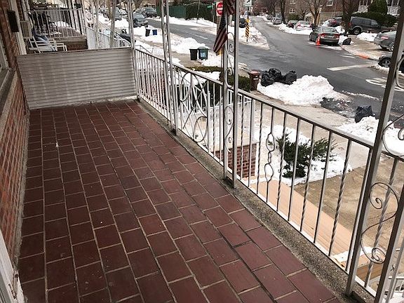 Morris Park location, all brick Colonial home has a large open living room and formal dining room with walk out access to rear deck and back yard, eat in kitchen with powder room, second floor has a large master bedroom, 2 guest rooms and full bath, carpeting covers hardwood floors, lower level studio apartment has front and rear walk out access , full kitchen and full bath, laundry room and attached garage, one block from #5 Morris Park train station and retail stores.