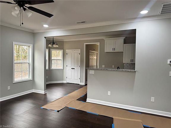 Beautiful open concept, new construction home! Come check out all the extras this home offers! Nine foot ceilings, granite countertops, soft close cabinets, engineered hardwoods, carpet and tile in wet areas. Ceiling fans in every room. Stainless steel appliances tie in beautifully with the tile backsplash in kitchen. Enjoy a relaxing shower after a hard day of work in your spacious tiled, walk in shower. No detail was missed! Do you like entertaining? This home is for you! Equipped with a deck and a spacious backyard, you will be ready for any special occasion. This home is move in ready! Make your appointment today! *Taxes have not been evaluated yet by Forsyth Co.