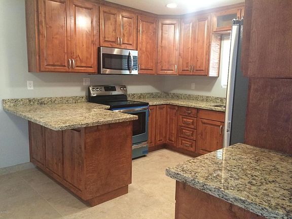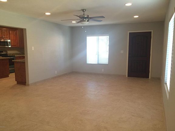 TWO BLOCKS from UA CAMPUS EVERYTHING inside is BRAND NEW! Gorgeous granite kitchen & bath counters, stainless steel appliances, brand new washer/dryer, solid alder wood extended height cabinets, solid alder wood doors, mirrored closet doors, 20'' x 20'' tile floors throughout. Two master bdrms each with their own private baths that include soaking tubs & glass shower doors. Half bath powder room in hall for guests. Fully extended front porch plus covered patio in fully enclosed back yard. Parking for 2 cars in driveway. Additional street parking available with petition for city permit.