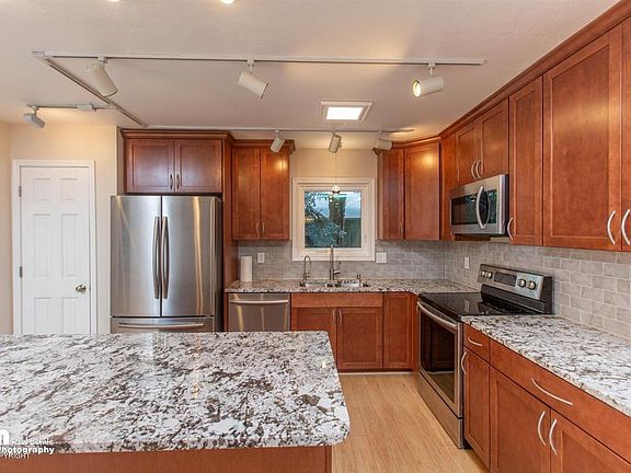 Beautifully renovated town home in Eastridge! Lots of natural light fills the living area. FP, secure private back yard looking out over tennis courts, close to gorgeous Chester Creek trails! 3 decks, private master suite w/ WIC & bath. Massive extra storage. high efficiency furnace, LED lighting, built in drinking water filtration, upgraded energy efficient SS appliances, New GE wash/dry, RV pkg.
