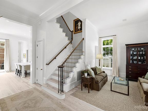 Prepare to be enchanted by this remarkable residence. From exceptional and modest curb appeal to prime location on one of Myers Park's most coveted streets, this home offers a beautiful blend of luxurious features and timeless aesthetics. Grande 12-ft ceilings grace the main floor, creating an immediate sense of space and elegance. Wide plank pine flooring offers sophistication while adding warmth to every step. Stunning chefs kitchen with Wolf range, Sub Zero fridge, marble countertops and incredible storage. Primary Suite on main with spa-like bathroom creates a retreat within a home. Two secondary bedrooms on upper level, each accompanied by full bath upstairs. Additional bonus room provides versatility, potentially serving as a 4th bedroom by adding a closet. An outdoor patio adorned with a wood-burning fireplace offers the perfect setting for both quiet evenings or social gatherings.