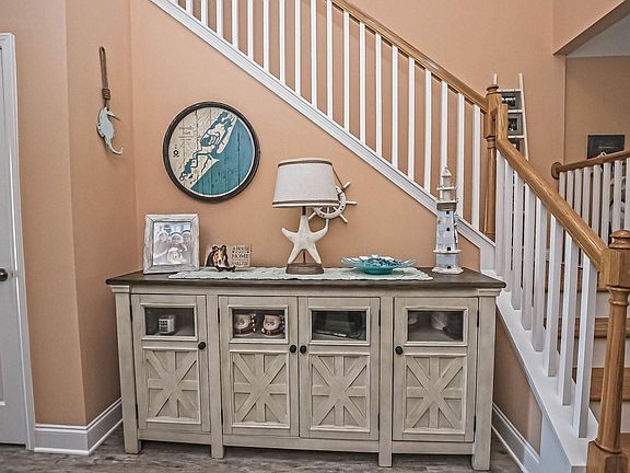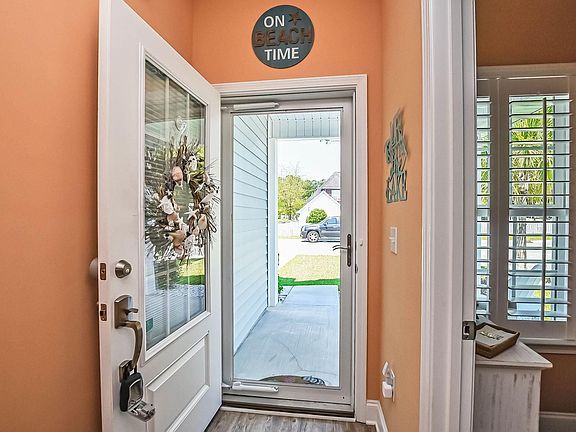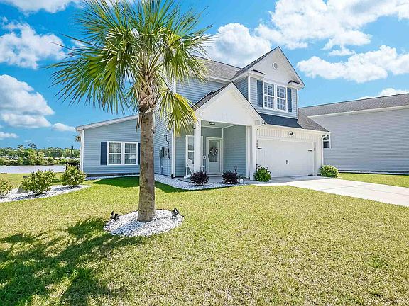 Welcome home to this pristine lakefront home located in the charming Murrells Inlet community of Kayak Kove. Not only is this home immaculate, it's just a golf cart ride to the beach and has a custom enclosed outdoor shower with hot and cold water. When you walk through the front door you will instantly enjoy the endless views of the 28 acre lake along with the nature and wildlife it provides, kayaking is allowed on the lake as well. You'll enjoy many days and nights enjoying the breeze off the lake from your back patio among your beautifully landscaped fenced in backyard yard featuring palm trees with rock landscape and landscape lighting. The entire yard has irrigation for ease of maintenance. The interior of this home has an open floor plan with high ceilings and many other upgrades.The main living area, dining room and wet areas have luxury vinyl plank flooring. The spacious master suite is on the first floor with slider doors leading out to your back patio overlooking the lake. The en suite bathroom has double sinks, shower, linen closet and a large walk in closet. The large living room leads out to your covered back patio. The newly added 15x22 flex space, currently being used as a den, features a gorgeous recessed electric fireplace and french doors for when privacy is desired. The kitchen has granite counter tops, grey shaker style cabinetry with under mounted lighting, custom tile back splash, a breakfast bar, pantry, recessed lighting and stainless steel appliances. The full sized laundry room has upper and lower cabinets with a utility sink. The half bath with a pedestal sink is on the first floor convenient for your guests. When you head up the gorgeous staircase with a landing featuring real wood treads and open to the downstairs you will find the other two large bedrooms and a spacious bathroom with a sizable vanity and tub shower combo. This home comes with structured wiring for high speed networking. All the windows have plantation shutters that will convey. This home is centrally located in Murrells Inlet to enjoy all The Grand Strand has to offer while being close to hospitals, grocery stores, shopping, dining, the Murrells Inlet MarshWalk and Garden City beach access points. If you are looking for a newer spacious turn key home that is well appointed in all the right places with tons of natural light than this is the home for you. Schedule your showing today! All square footage is approximate and not guaranteed, buyer is responsible for verification.